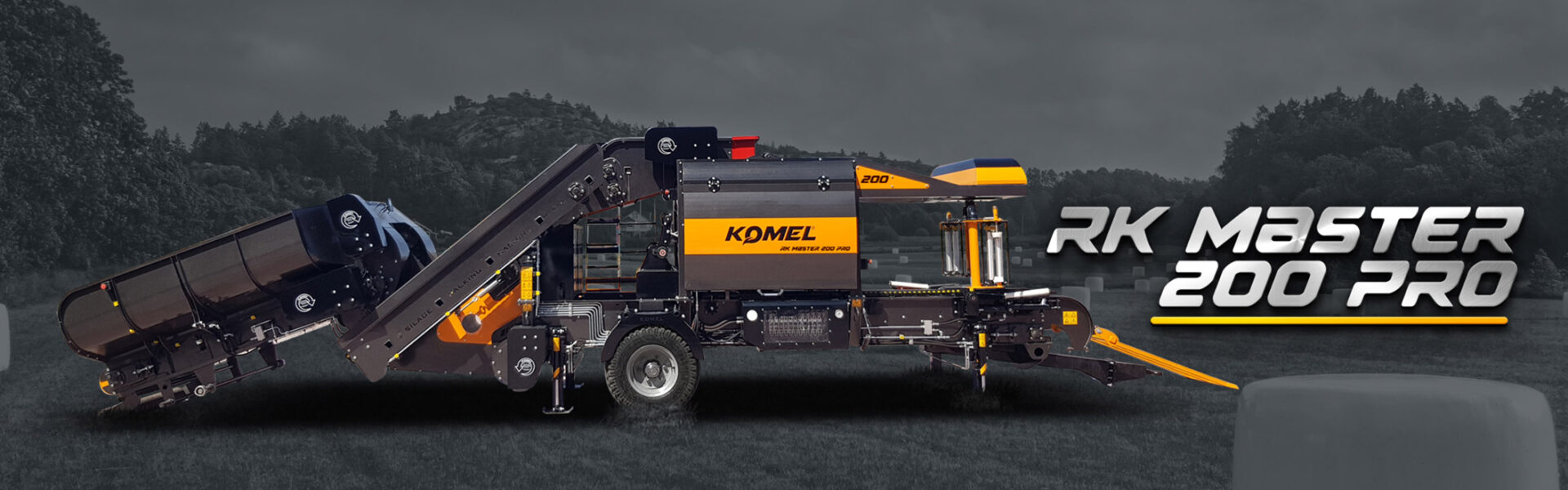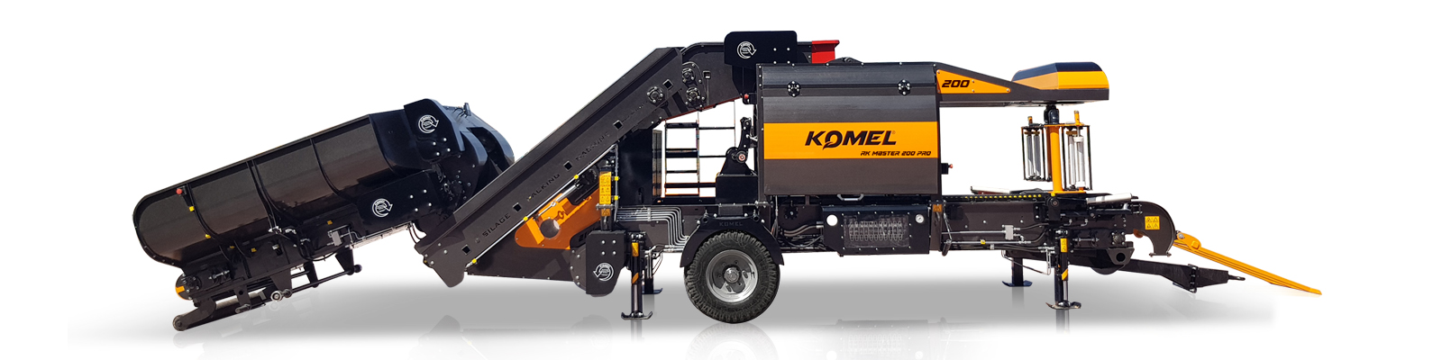 La macchina imballatrice di rotoli d’insilato combinato, prodotto dalla KOMEL, è una macchina che prende in movimento dal motore elettrico e comprime l’insilato pronto di: polpa di barbabietola, polpa di frutta e di tutte le varietà di piante tritate in grossi foraggi verdi che vengono riempiti nella tramoggia di alimentazione con un veicolo ribaltabile, li arrotola in rotoli, li avvolge con un film estensibile (strech), isola il prodotto ed evita qualsiasi contatto con l’esterno assicurando la conservazione dei prodotti attraverso un periodo di tempo più lungo.