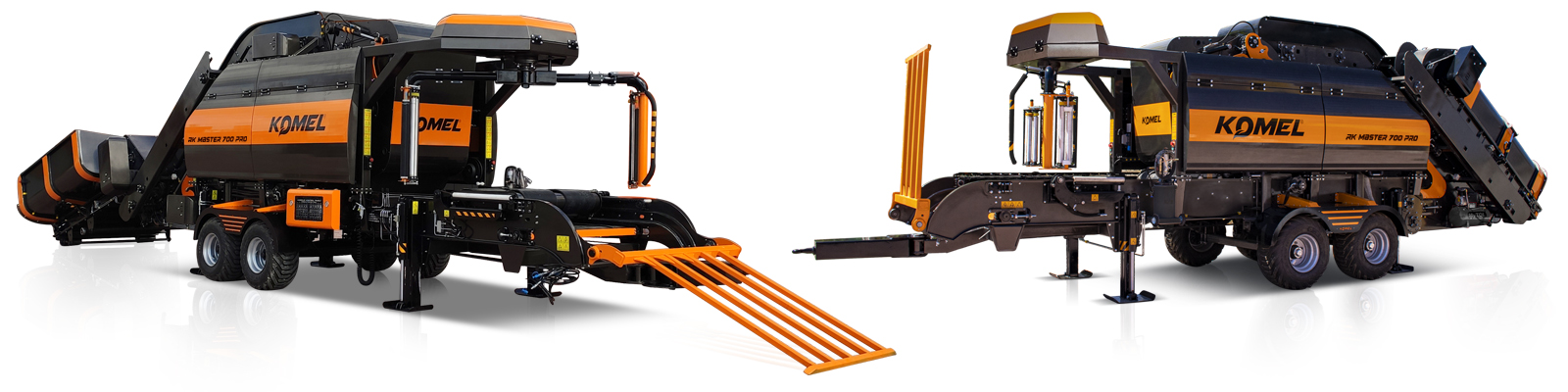 La macchina imballatrice di rotoli d’insilato combinato, prodotto dalla KOMEL, è una macchina che prende in movimento dal motore elettrico e comprime l’insilato pronto di: polpa di barbabietola, polpa di frutta e di tutte le varietà di piante tritate in grossi foraggi verdi che vengono riempiti nella tramoggia di alimentazione con un veicolo ribaltabile, li arrotola in rotoli, li avvolge con un film estensibile (strech), isola il prodotto ed evita qualsiasi contatto con l’esterno assicurando la conservazione dei prodotti attraverso un periodo di tempo più lungo.